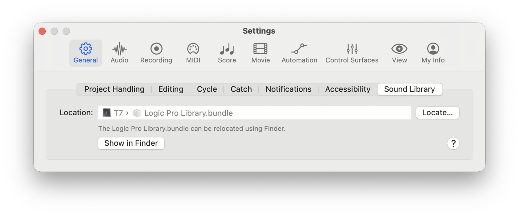 Это самая критичная часть обновления. Полная коллекция звуков весит более 50 ГБ. В прошлых версиях мы использовали кнопку Relocate Sound Library, но в Logic Pro 12 Apple убрала эту функцию, заменив её системой Bundles (Файлы-контейнеры).